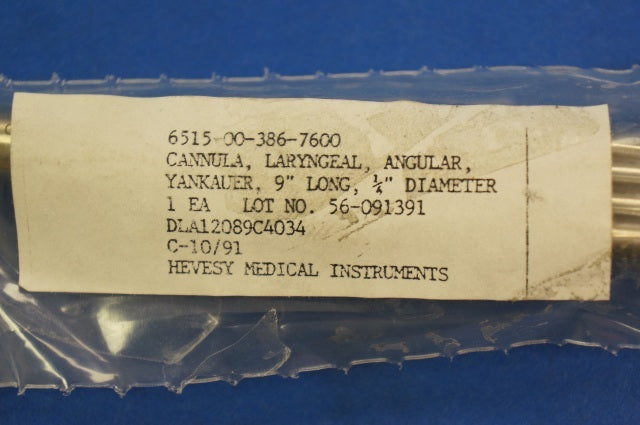 Iii part name assigned by controlling agency: cannula laryngeal angular yankauer 9"lg 0.234-0.266" dia brass
