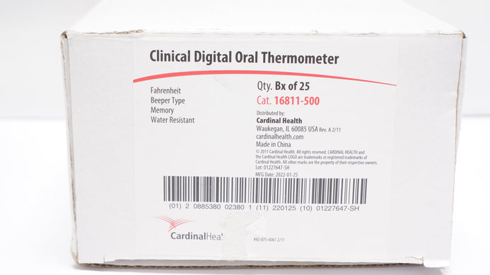 - Cardinal Health 16811-500 Clinical Digital Oral Thermometer - Box of 25