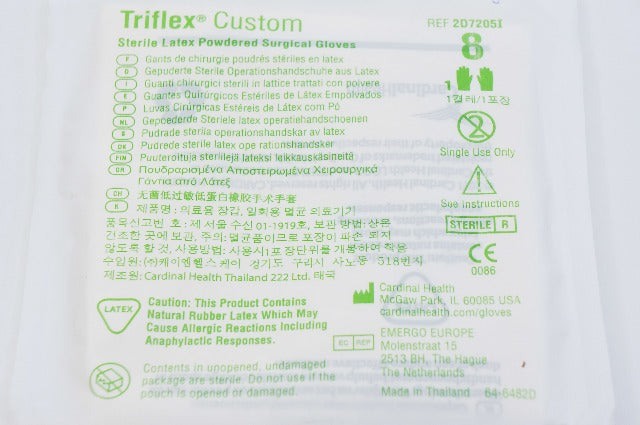 - Cardinal Health 2D7205I Triflex Custom Latex Powder Surgical Gloves 8 (x)