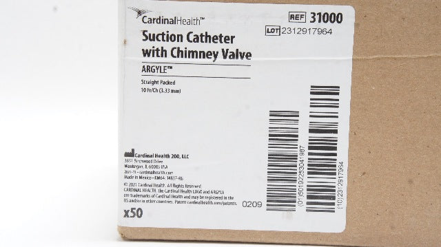 - Cardinal Health 31000 Suction Cath. W/Chimney Valve Argyle 10Fr/Ch - Box of 50