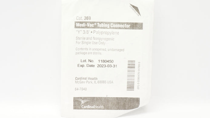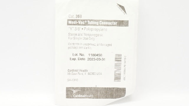 - Cardinal Health 369 Medi-Vac Tubing Connector Y 3/8inch Polypropylene (x)