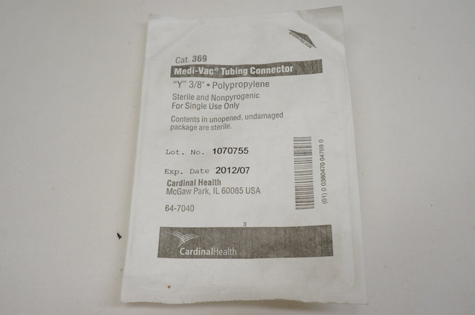 - Cardinal Health 369 Medi-Vac Tubing Connector "Y" 3/8inch (x)