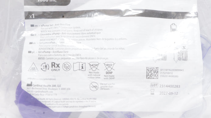 - Cardinal Health 773656 Kangaroo ePump Set Anti-free Flow 1000mL