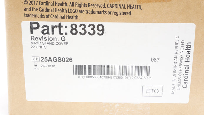 - Cardinal Health 8339 Convertors Mayo Stand Cover 29.5in x 55.5in - Box of 22