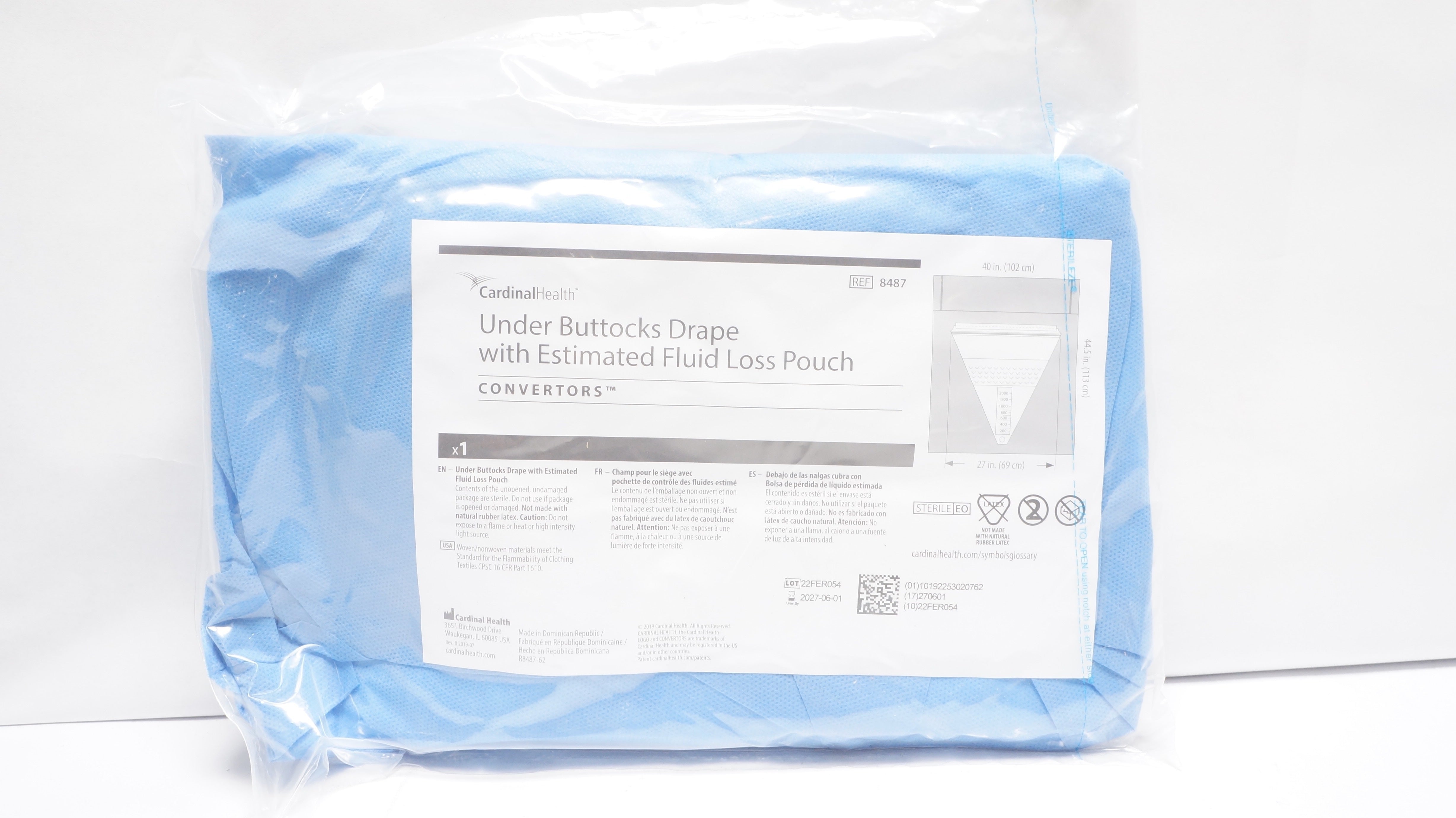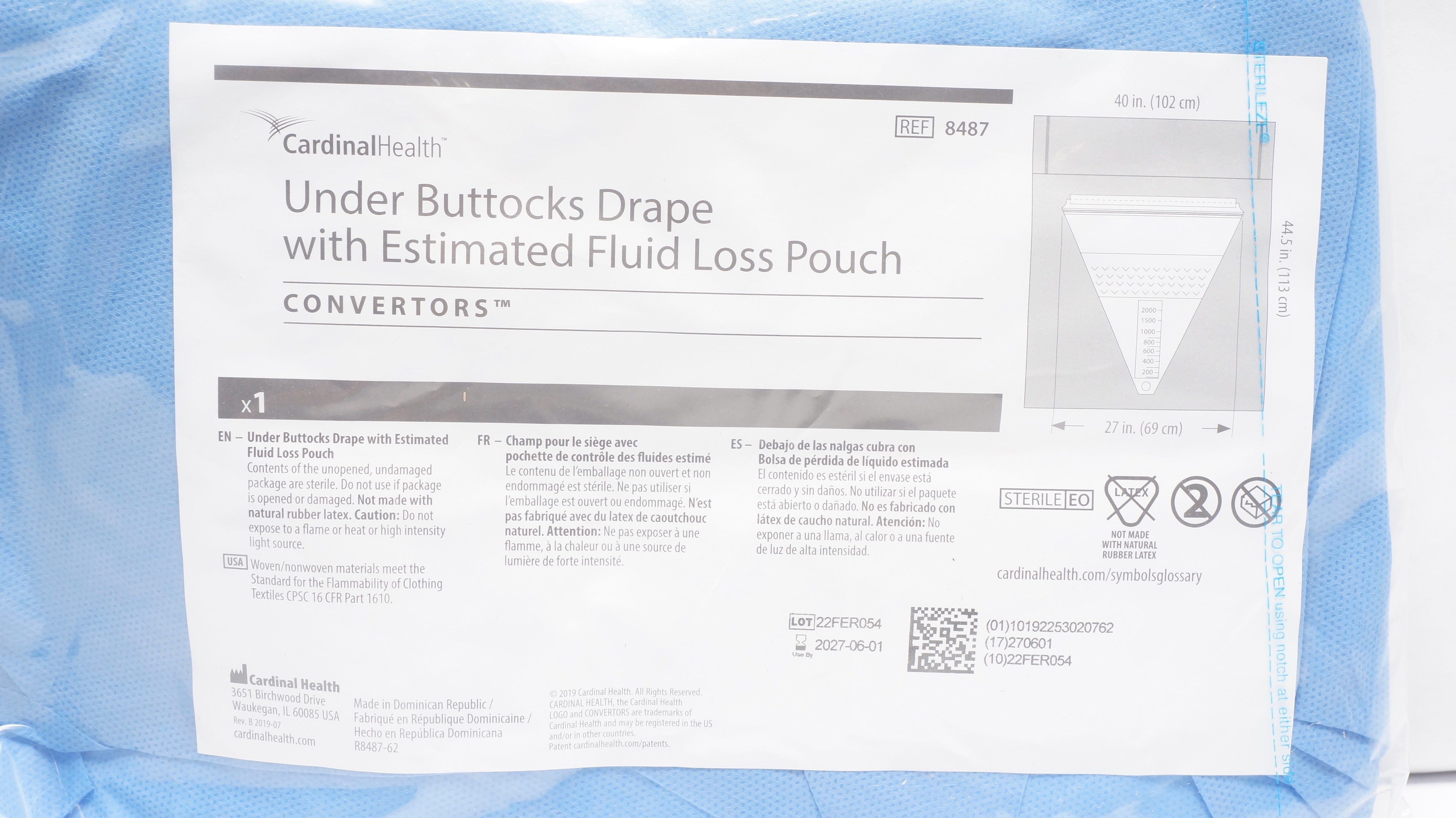 - Cardinal Health 8487 Under Buttocks Drape w/ Estimated Fluid Loss Pouch