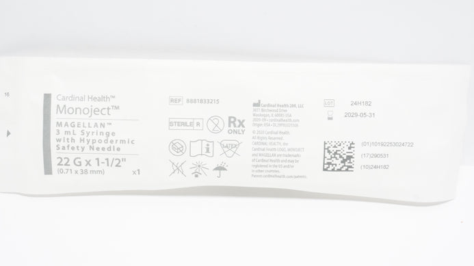 - Cardinal Health 8881833215 Monoject 3mL Syringe Ndle 22G x 1-1/2inch