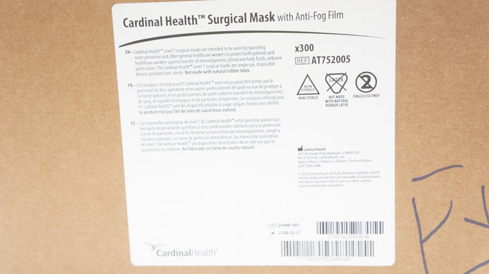 - Cardinal Health AT752005 Surgical Mask with Anti-Fog Film - Box of 300
