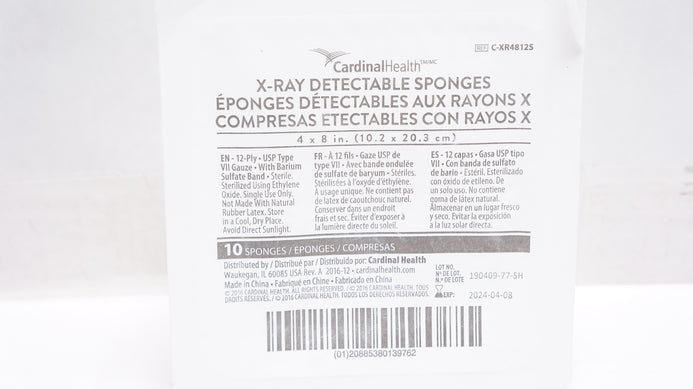 - Cardinal Health C-XR4812S X-Ray Detectable Sponges 4 x 8inch (x) - Pack of 10