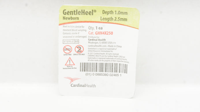 - Cardinal Health GHN4X250 GentleHeel Newborn Incision Device 1.0mm x 2.5mm