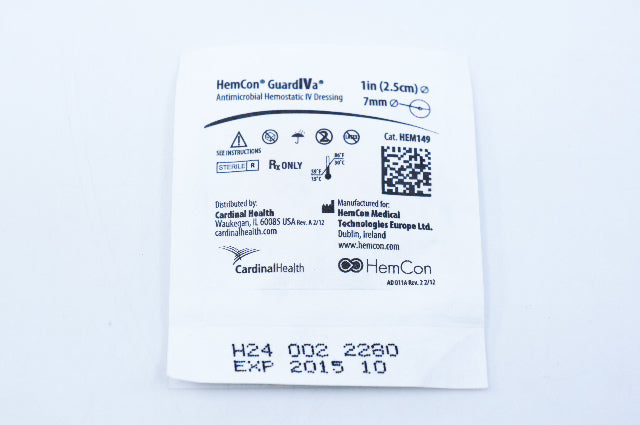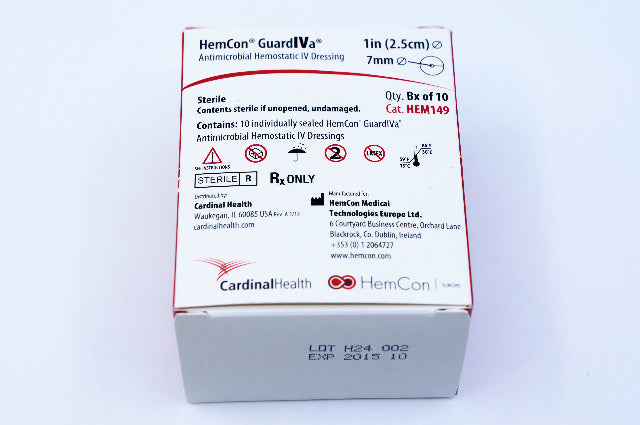 - Cardinal Health HEM149 HemCon Hemostatic IV Dressing 1inch x 7mm ~ Box of 10 (x)