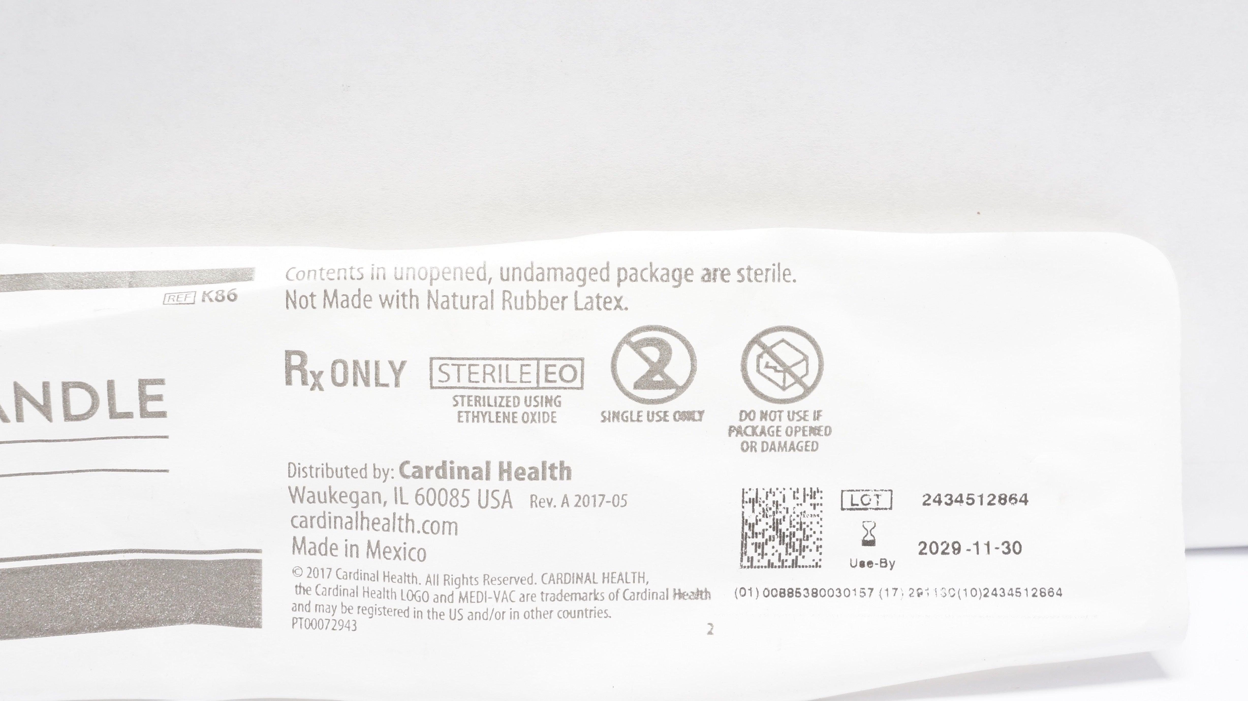 - Cardinal Health K86 Medi-Vac Yankauer Suction Handle with Bulbous Tip