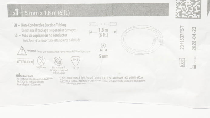 - Cardinal Health N56A Medi-Vac Non-Conductive Suction Tubing 5mm x 6Ft