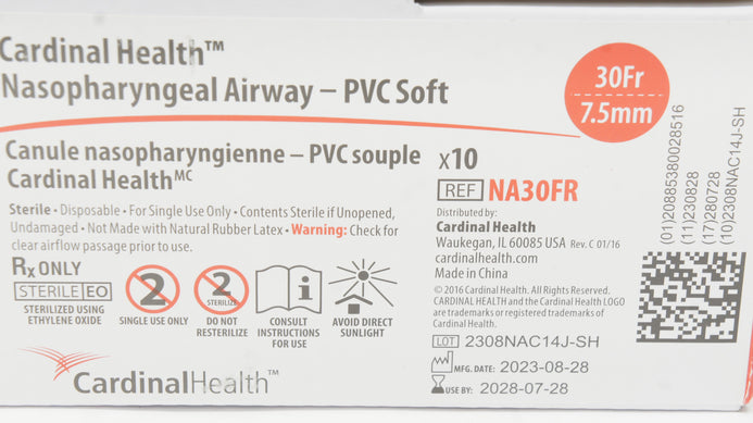 - Cardinal Health NA30FR Nasopharyngeal Airway - PVC Soft 30Fr. - Box of 10
