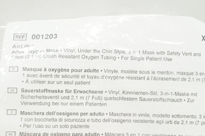 - CareFusion 001203 AirLife Adult Oxygen Mask Vinyl w/Oxygen Tubing 7ft. (x)