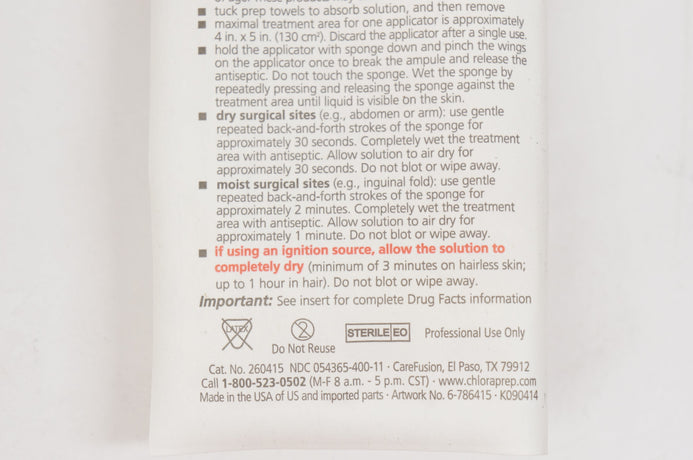 - CareFusion 260415 ChloraPrep With Tint 3ml Applicator, Hi-Lite Orange