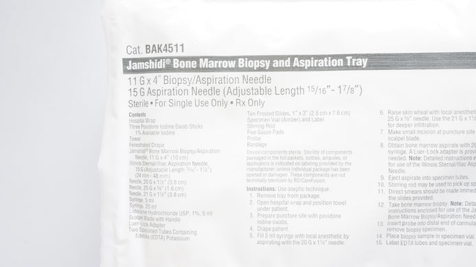 - CareFusion BAK4511 Jamshidi Bone Marrow Biopsy & Aspiration Tray 11G x 4inch (x)