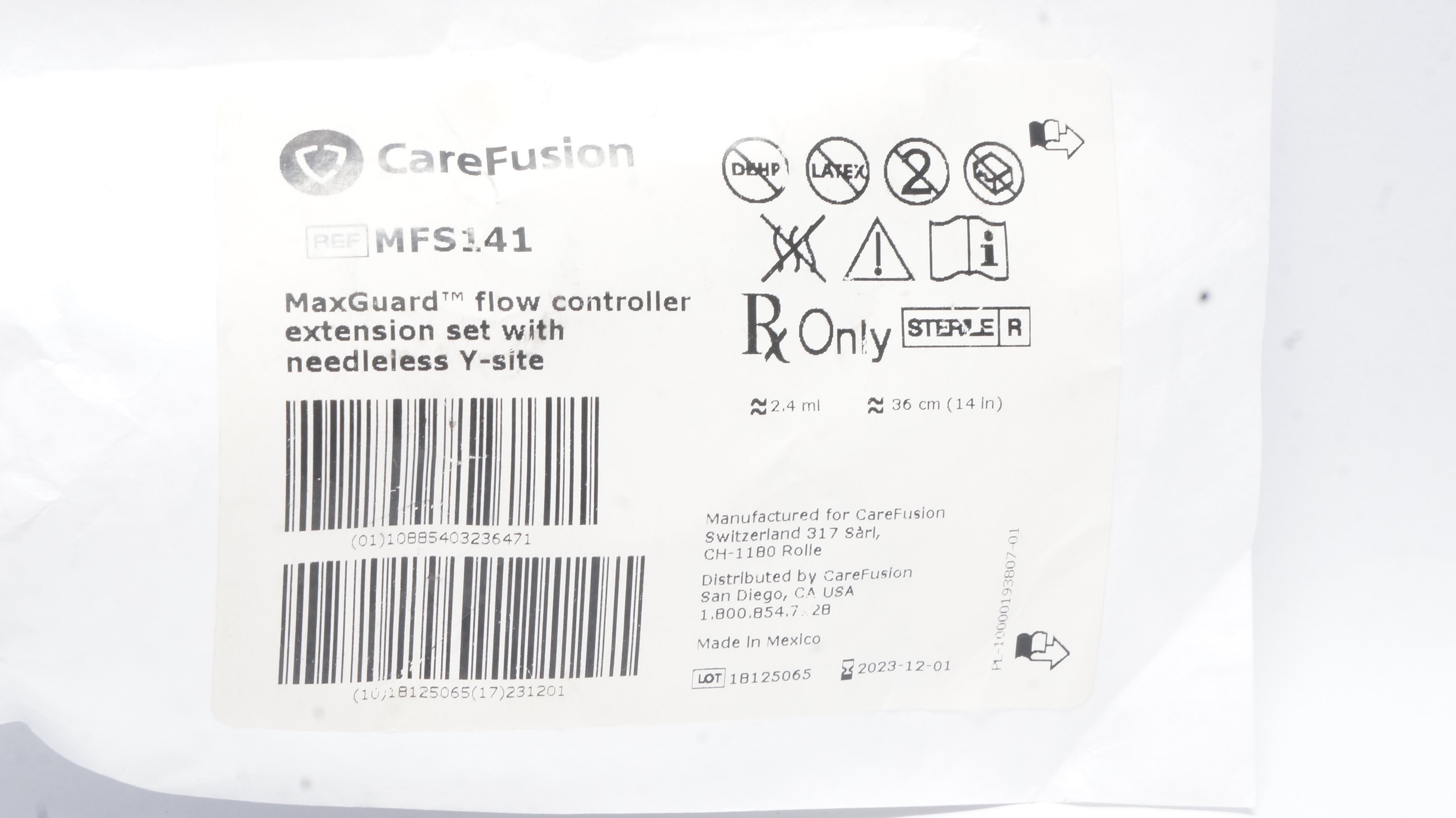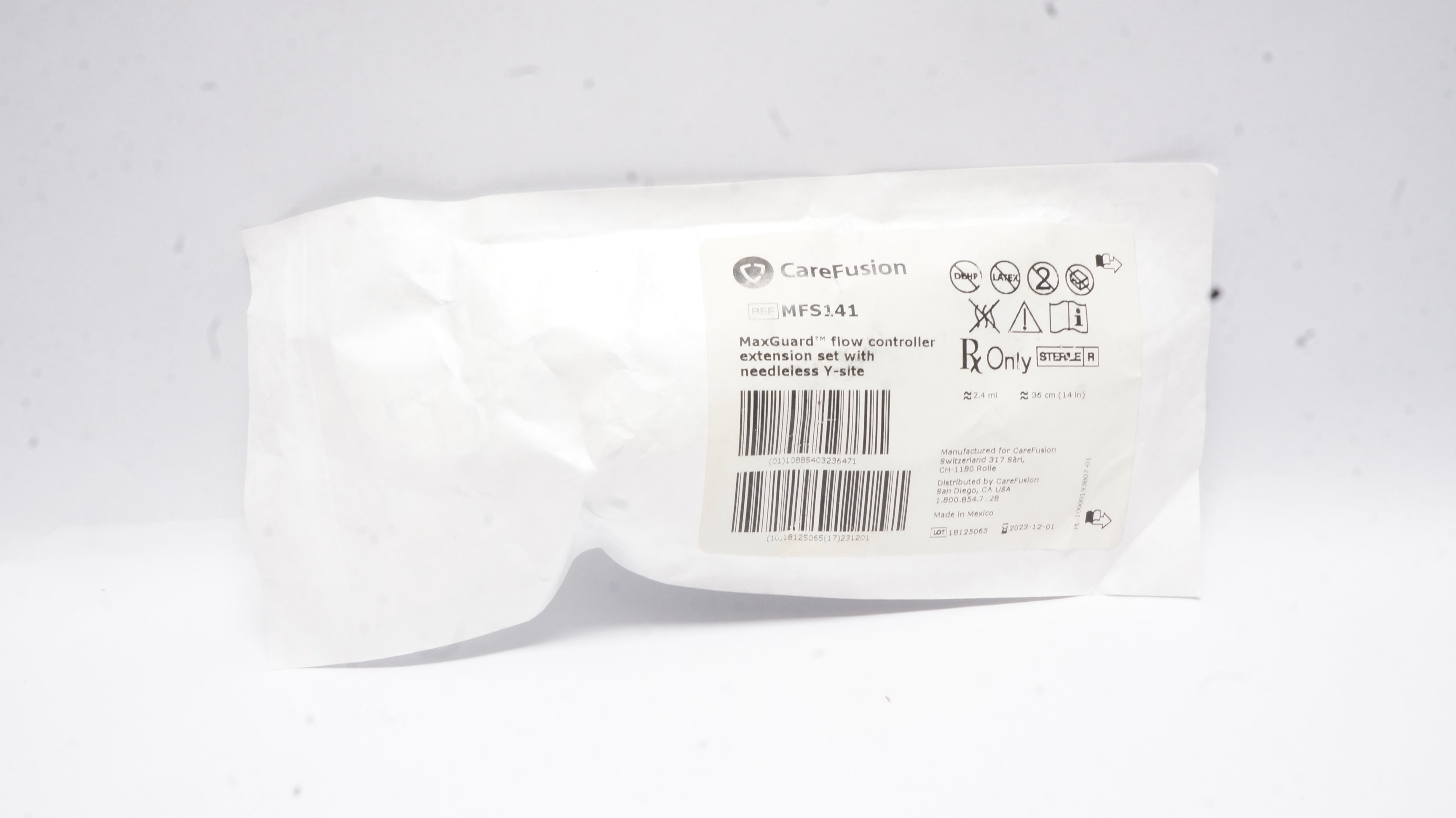 - CareFusion MFS141 MaxGuard Flow Controller Extension Set 2.4ml x 14inch Appx.(x)