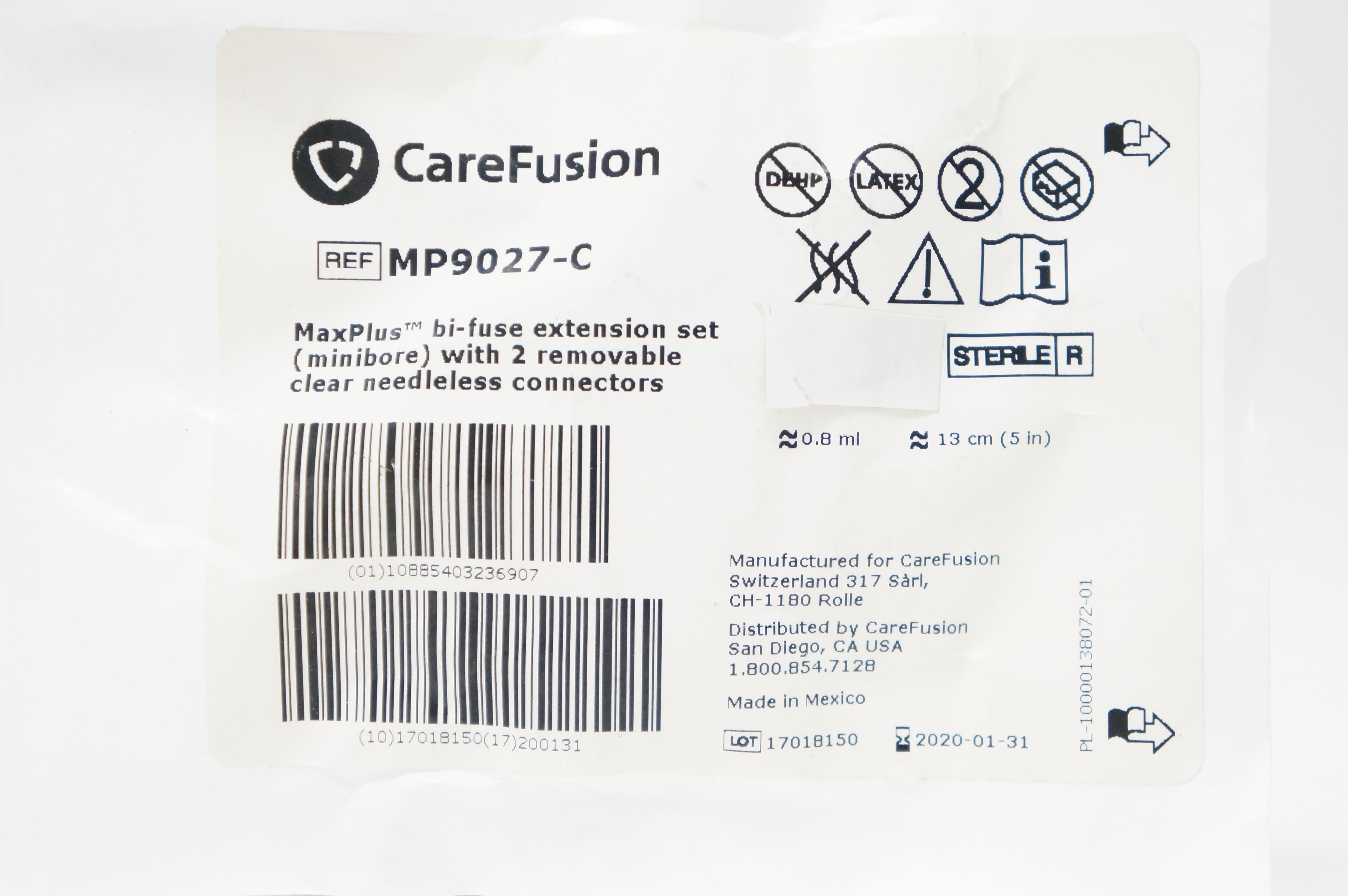 - CareFusion MP9027-C MaxPlus Bi-Fuse Extension Set 0.8ml x 5inch (x)