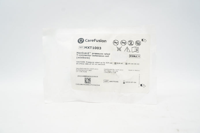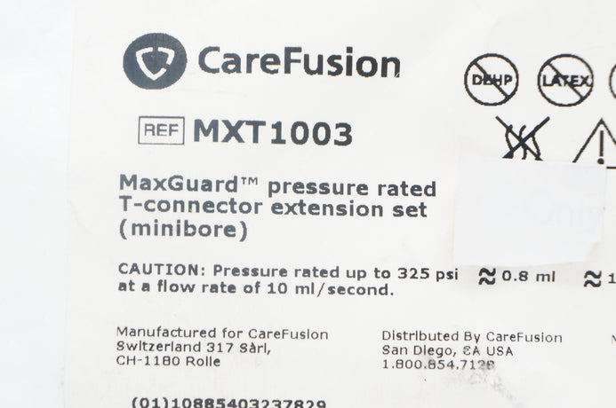- CareFusion MXT1003 MaxGuard Pressure Rated T-Connector Extension Set 0.8ml