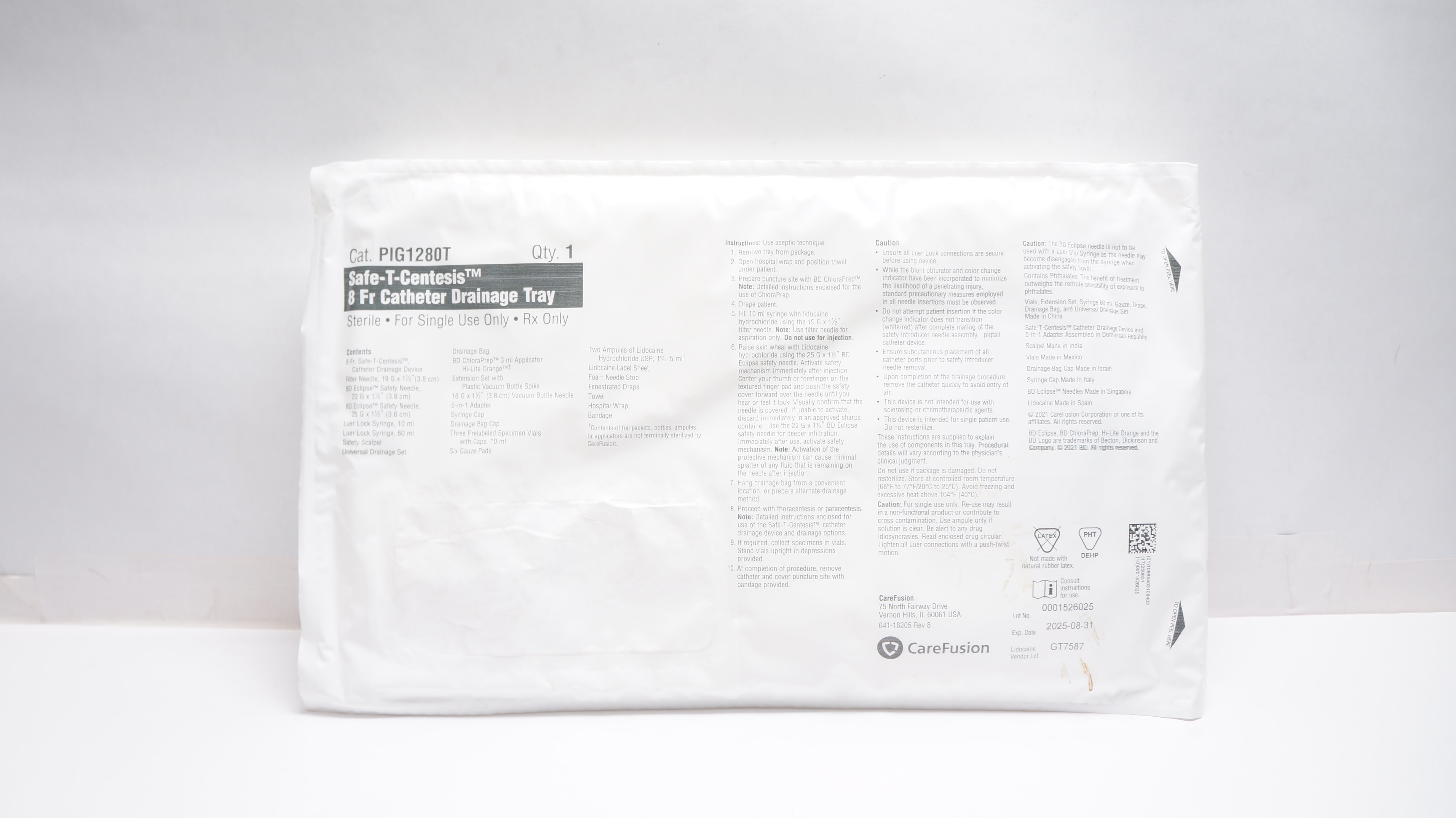 - CareFusion PIG1280T Safe-T-Centesis 8Fr. Cath. Drainage Tray