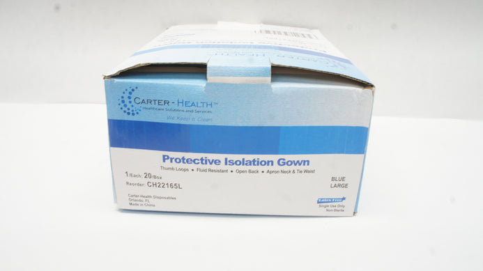 - Carter-Health CH22165L Protective Isolation Gown Blue, Large (x) - Box of 20
