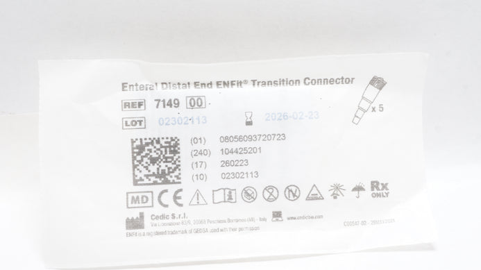 - Cedic 7149 Enteral Distal END ENFit Transition Connector - Pack of 5