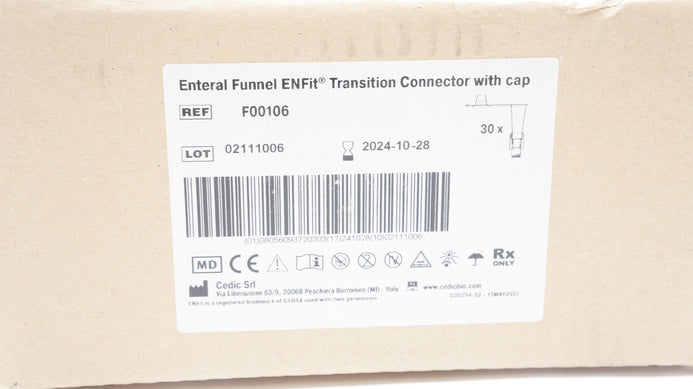 - Cedic Srl F00106 Enteral Funnel ENFit Transition Connector W/Cap - Box of 30