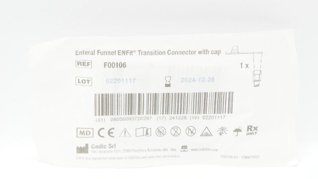 - Cedic Srl F00106 Enteral Funnel ENFit Transition Connector With Cap (x)