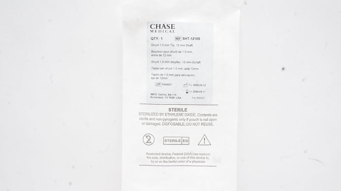 - Chase Medical SHT-1210S Shunt 1.0mm Tip, 12mm Shaft (x)