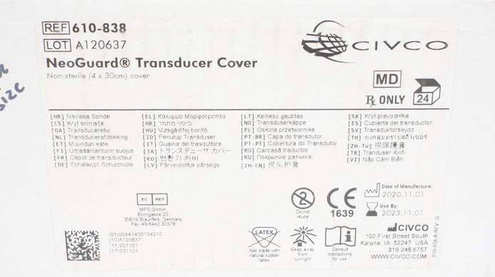- Civco 610-838 NeoGuard Transducer Cover 4 x 30cm - Box of 24 (x)