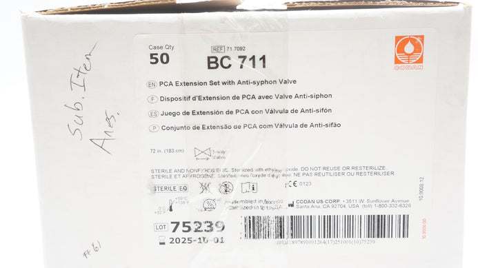 - Codan BC 711 PCA Extension Set With Anti-Syphon Valve - Case of 50