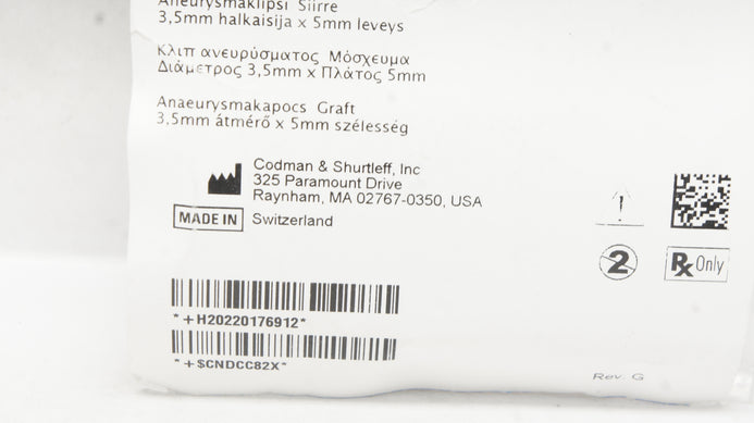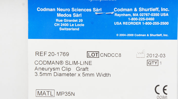 - Codman 20-1769 Slim-Line Aneurysm Clip Graft 3.5mm x 5mm