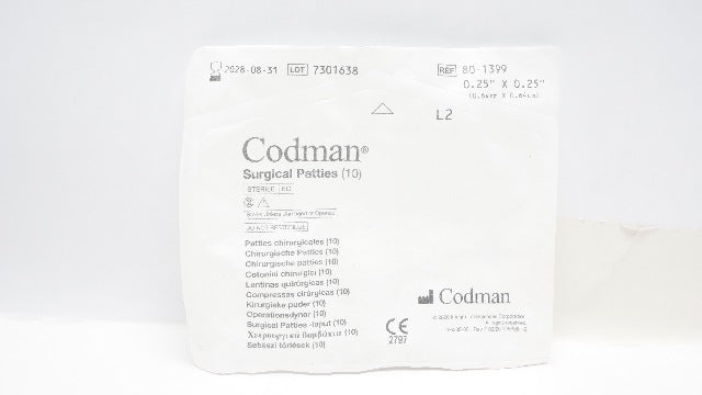 - Codman 80-1399 Surgical Patties 1/4inch x 1/4inch - Pack of 10