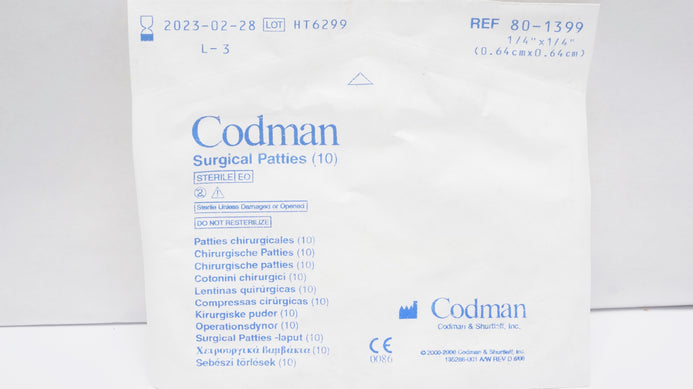- Codman 80-1399 Surgical Patties 1/4inch x 1/4inch (x) - Pack of 10