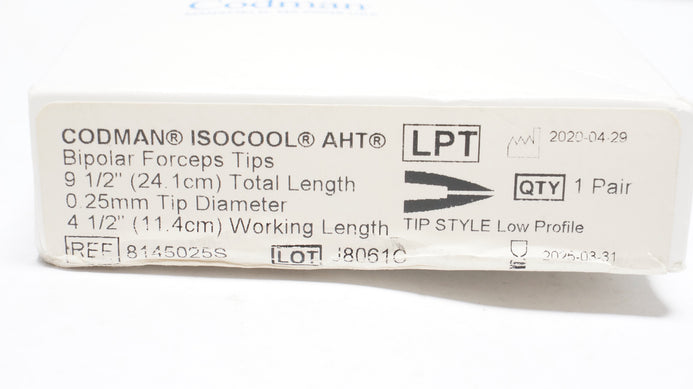 - Codman 8145025S Isocool AHT Bipolar Forceps Tips 9-1/2 in. x 0.25mm (x)