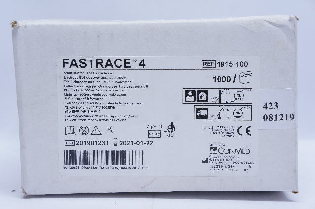 - ConMed 1915-100 FASTRACE 4 Adult Resting Tab ECG Electrode - Box of 1000