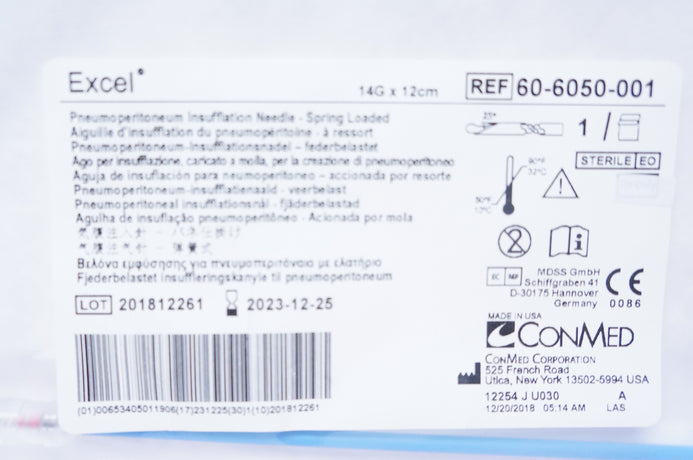 - Conmed 60-6050-001 Excel Pneumoperitoneum Insufflation Needle 14G x 12cm