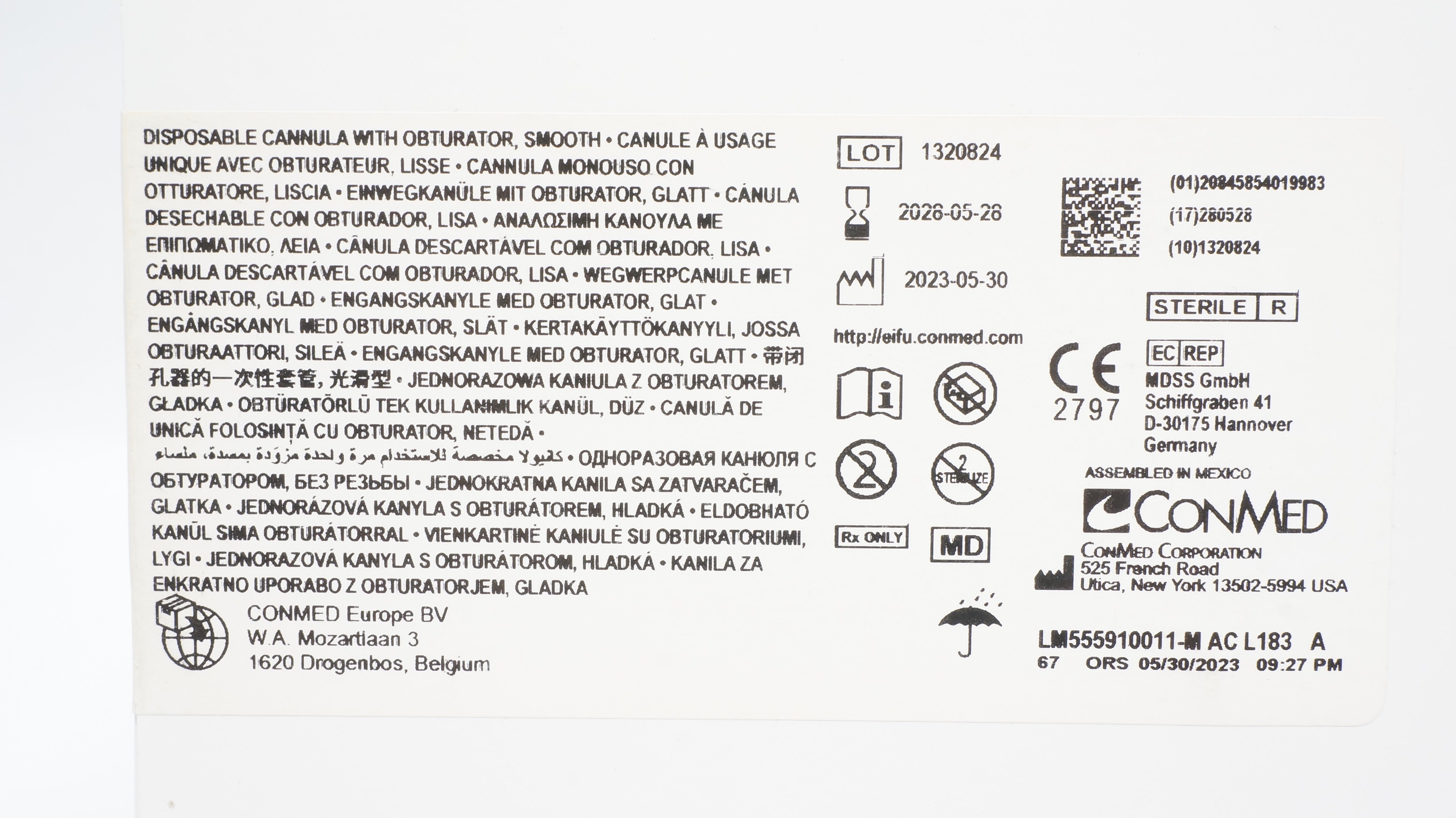 - ConMed C7334 Disposable Cannula W/Obturator,Smooth 6.0mm x 75mm - Box of 6 (x)