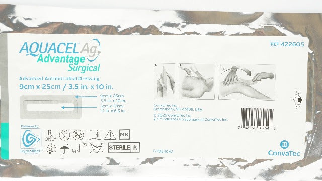 - ConvaTec 422605 Aquacel Ag Advanced Antimicrobial Dressing 3.5inch x 10inch