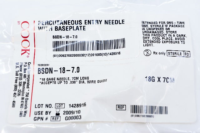 - Cook G00003 Percutaneous Entry Ndle With Baseplate 18G x 7cm (x)