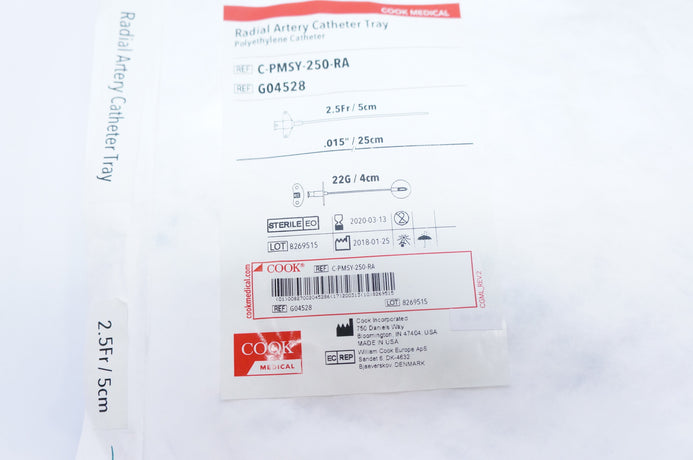 - Cook G04528 Radial Artery Cath. Tray 2.5Fr x 0.015inch x 22G (x)
