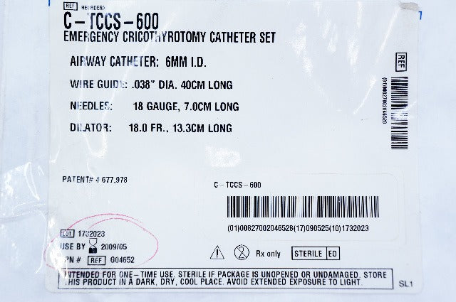 - Cook G04652 Emergency Cricothyrotomy Cath. Set 6mm x 0.038inch (x)