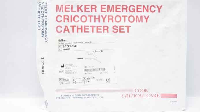 - Cook G06245 Melker Uncuffed Emergency Cricothyrotomy Cath. Set 3.5mm ID (x)