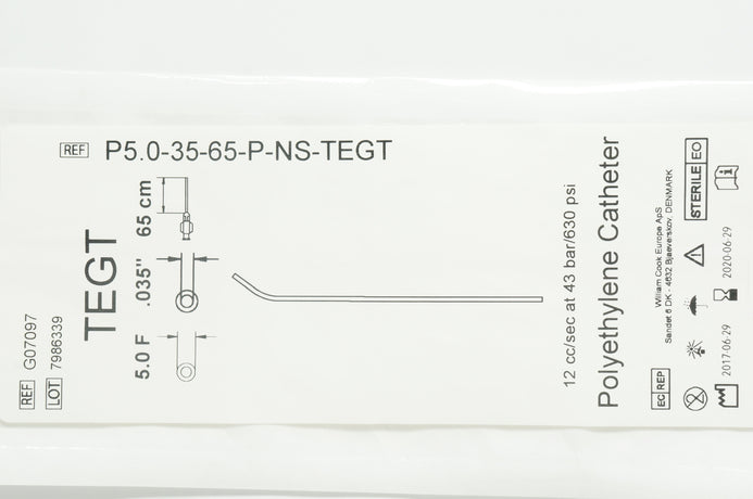 - Cook G07097 Polyethylene Cath. 5.0F x 0.35inch x 65cm