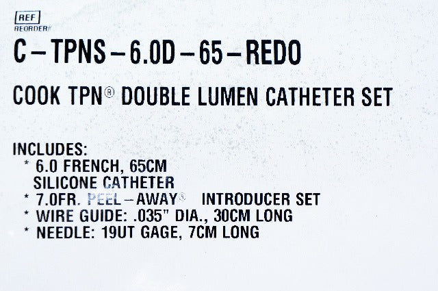 - Cook G12027 Cook TPN Double Lumen Cath. Set 6Fr. (x)