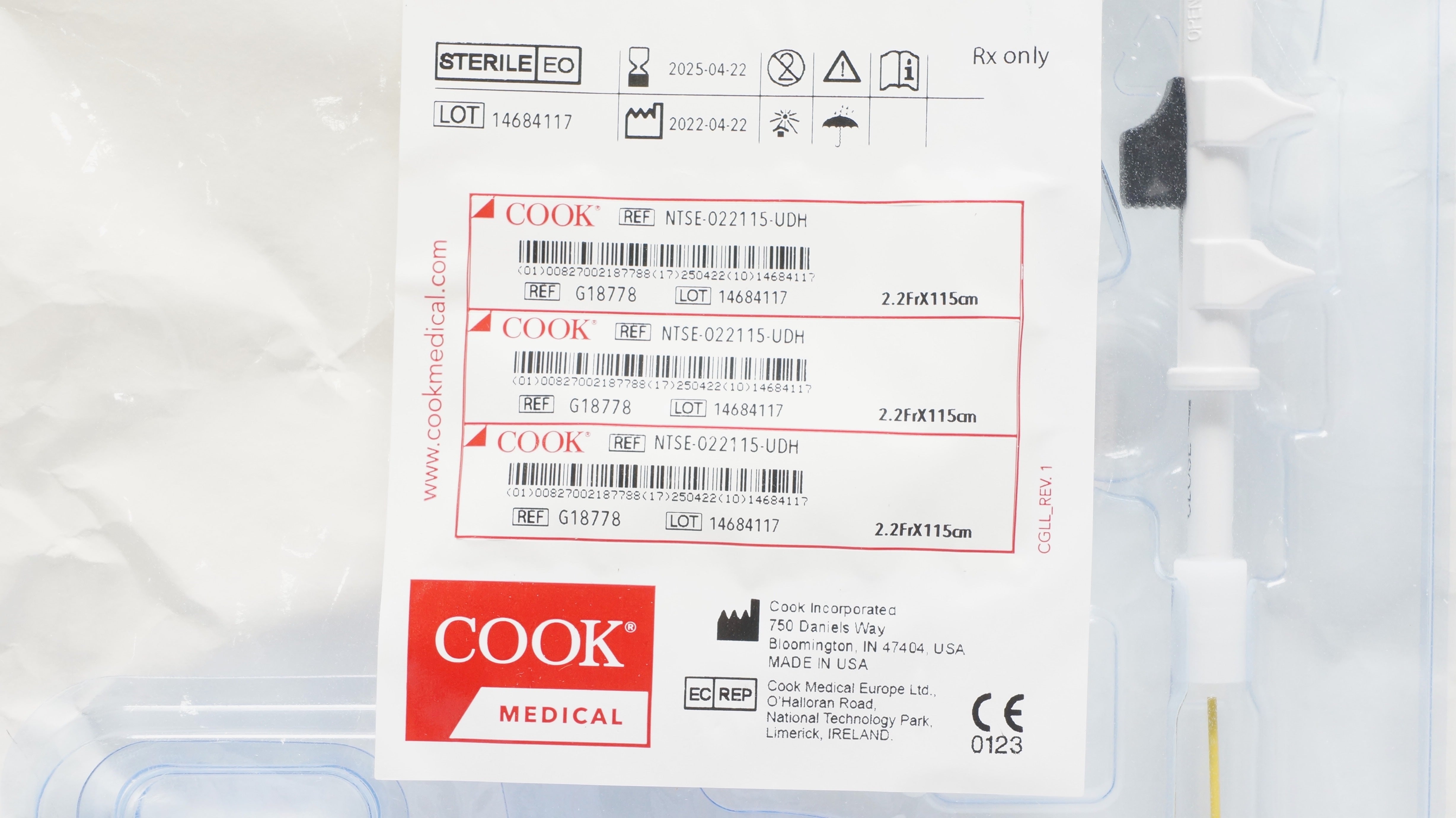 - Cook G18778 NCircle Nitinol Tipless Stone Extractor 2.2Fr x 1cm (x)