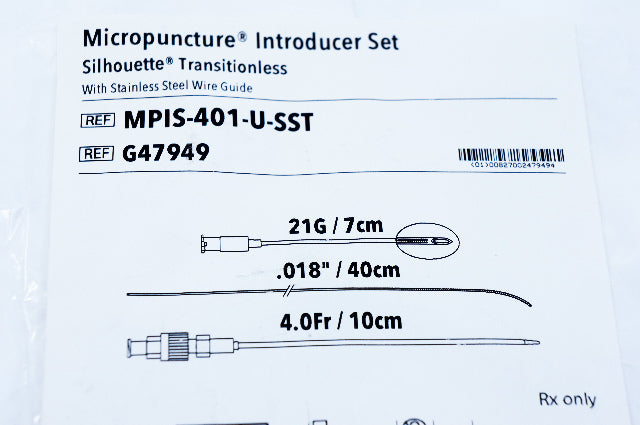 - Cook G47949 Micropuncture Introducer Set Silhouette Transitionless 21G x 7cm (x)