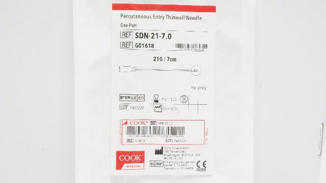 - Cook Medical G01618 Percutaneous Entry Thinwall Needle One-Part 21G/7cm (x)