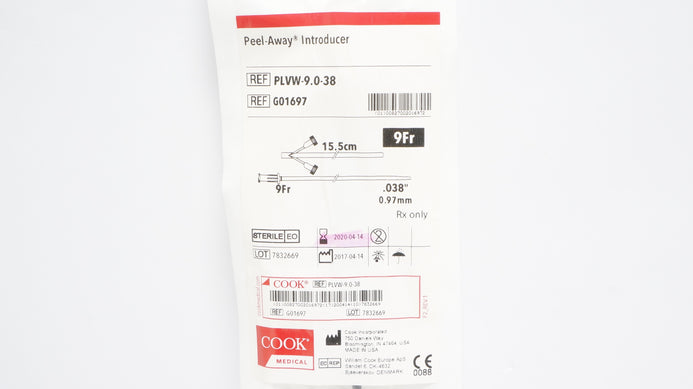 - Cook Medical G01697 Peel-Away Introducer Set 9Fr x .038inch x 15.5cm (x)