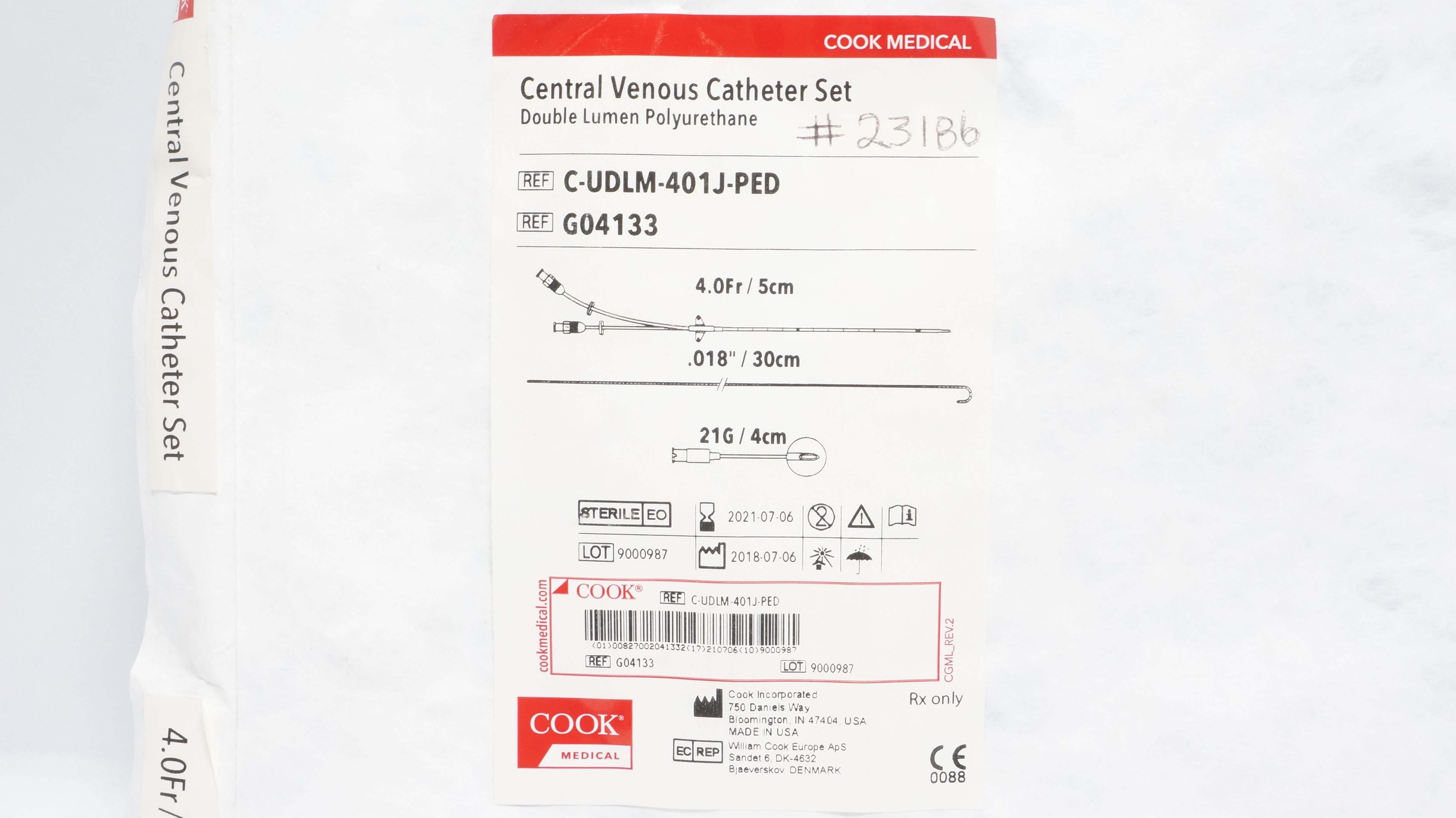 - Cook Medical G04133 Central Venous Cath. Set 4.0Fr x .018 inch x 21G (x)